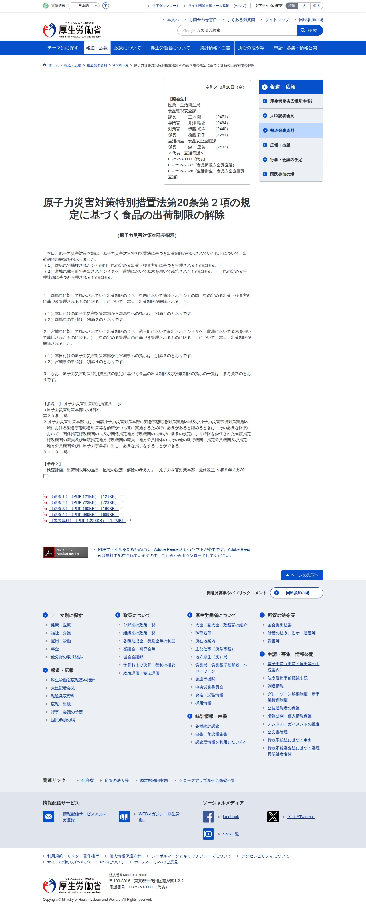原子力災害対策特別措置法第20条第2項の規定に基づく食品の出荷制限の解除 |厚生労働省