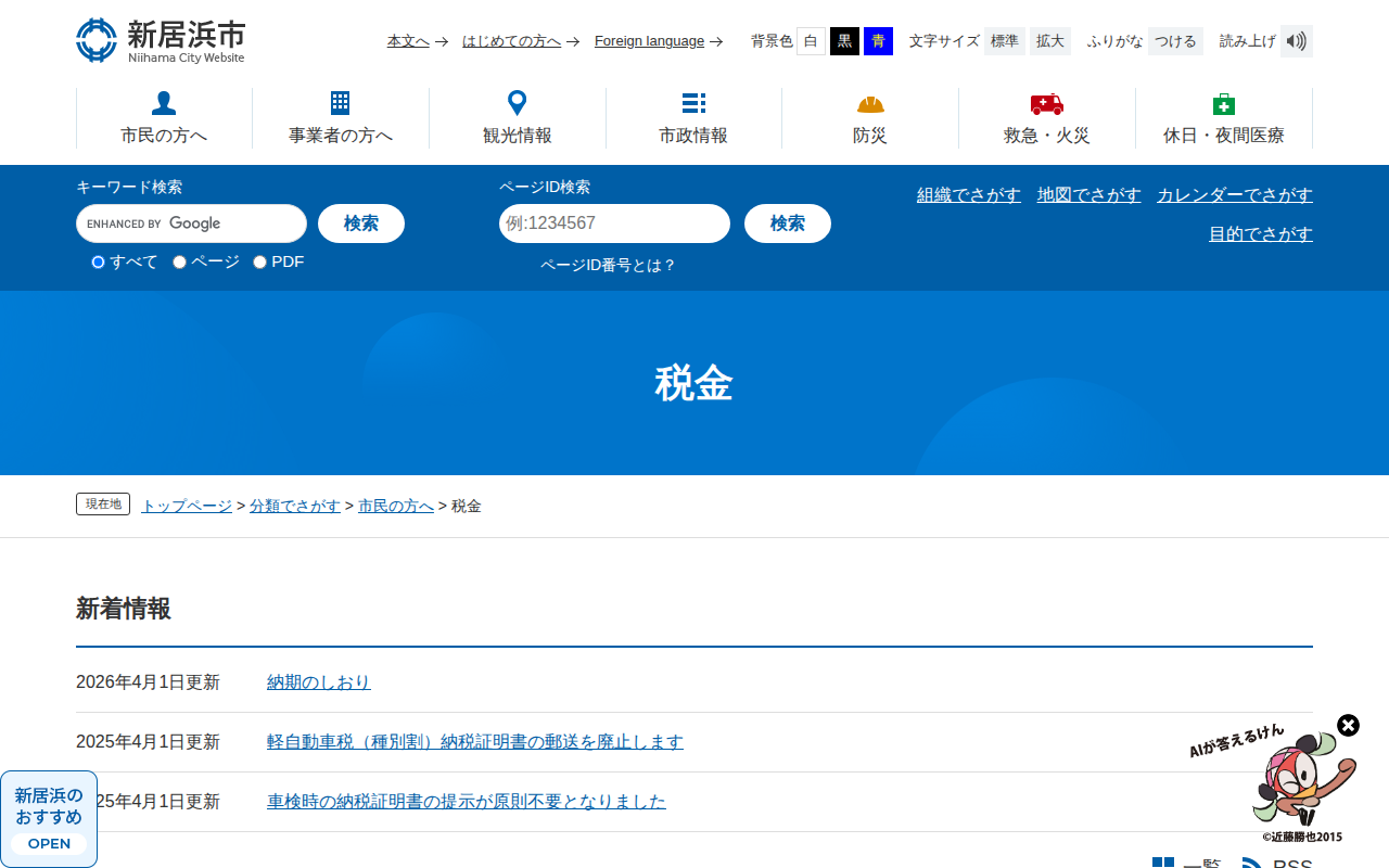 税金 - 愛媛県新居浜市ホームページ|四国屈指の臨海工業都市