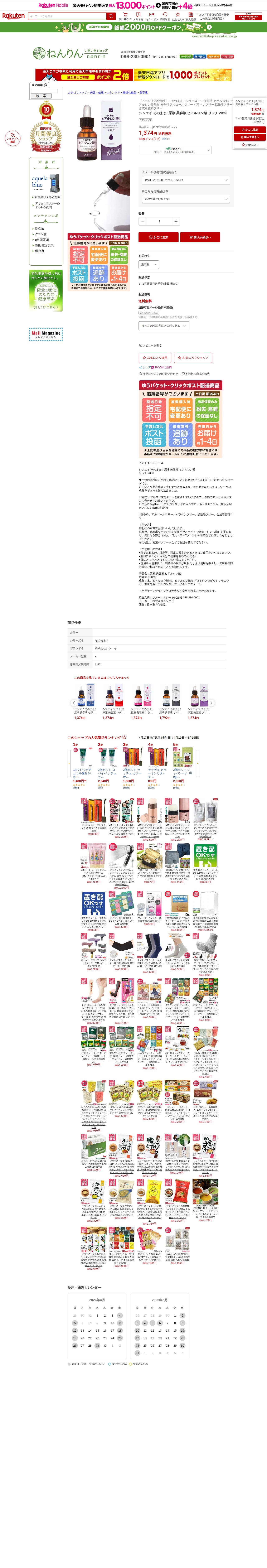 【楽天市場】シンエイ そのまま! 原液 美容液 ヒアルロン酸 リッチ 20ml:いきいきショップ【ねんりん】 - 保存されたスクリーンショット