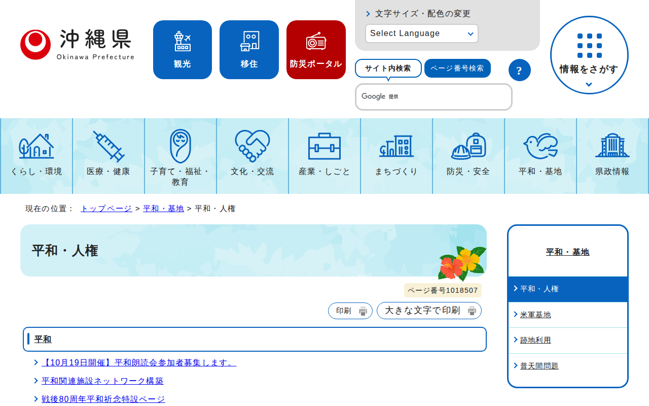 平和・人権|沖縄県公式ホームページ - 保存されたスクリーンショット