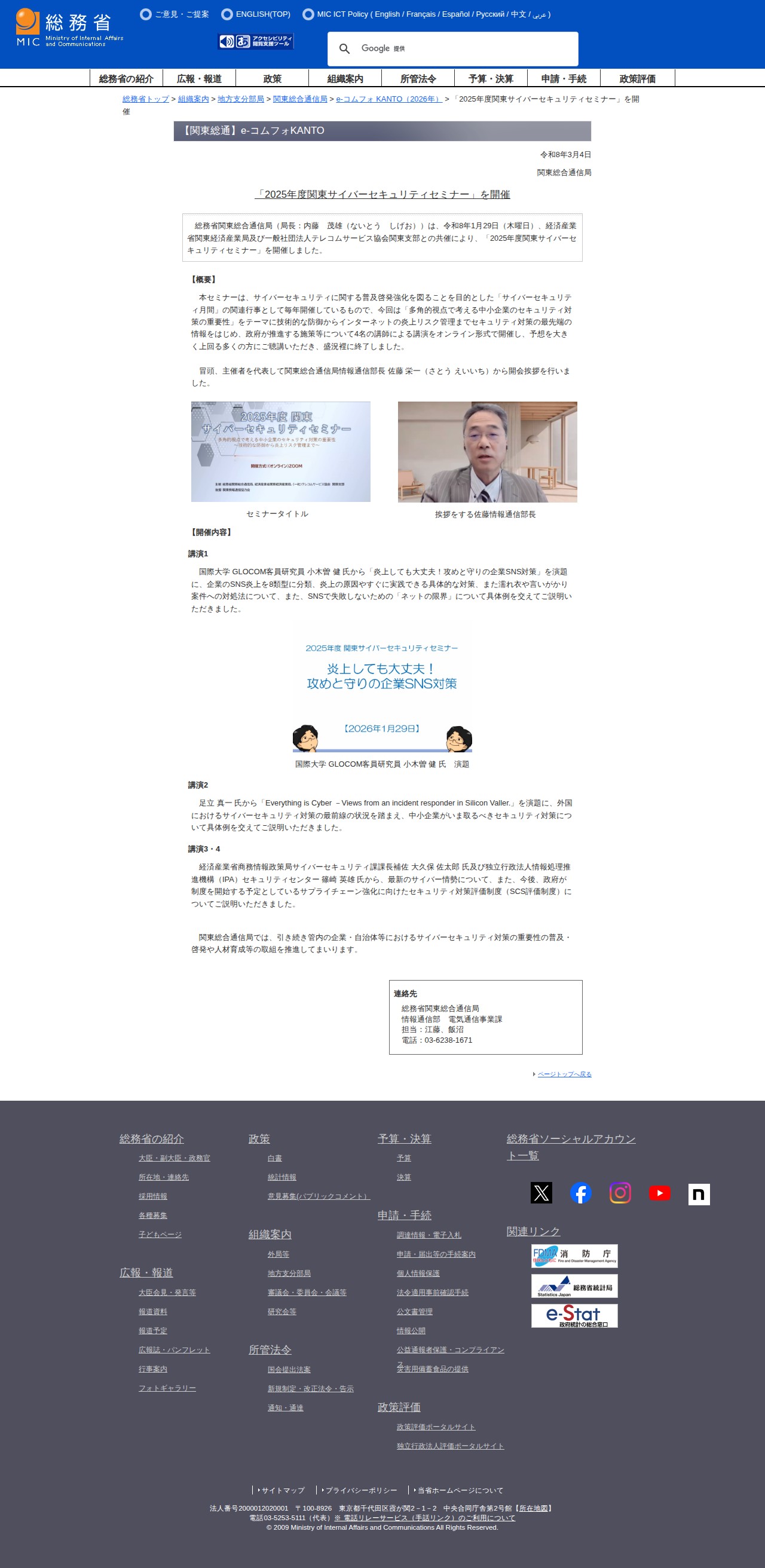 総務省|関東総合通信局|「2025年度関東サイバーセキュリティセミナー」を開催