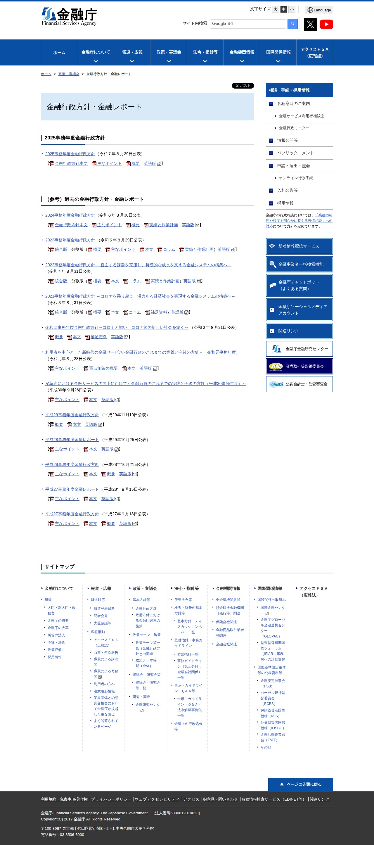 https://www.fsa.go.jp/policy/summary.html2026年4月8日 01:07 JST•アーカイブページ・viewer・ダウンロードは、この保存版を基準に表示されます。