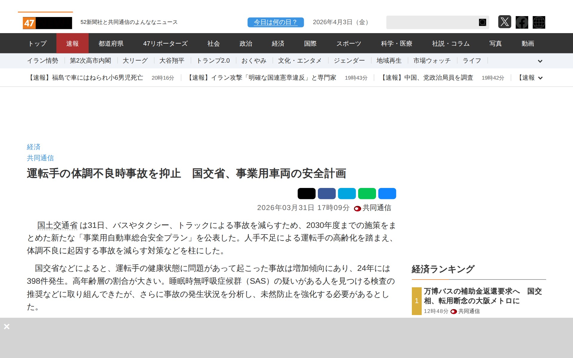 運転手の体調不良時事故を抑止 国交省、事業用車両の安全計画|47NEWS(よんななニュース)