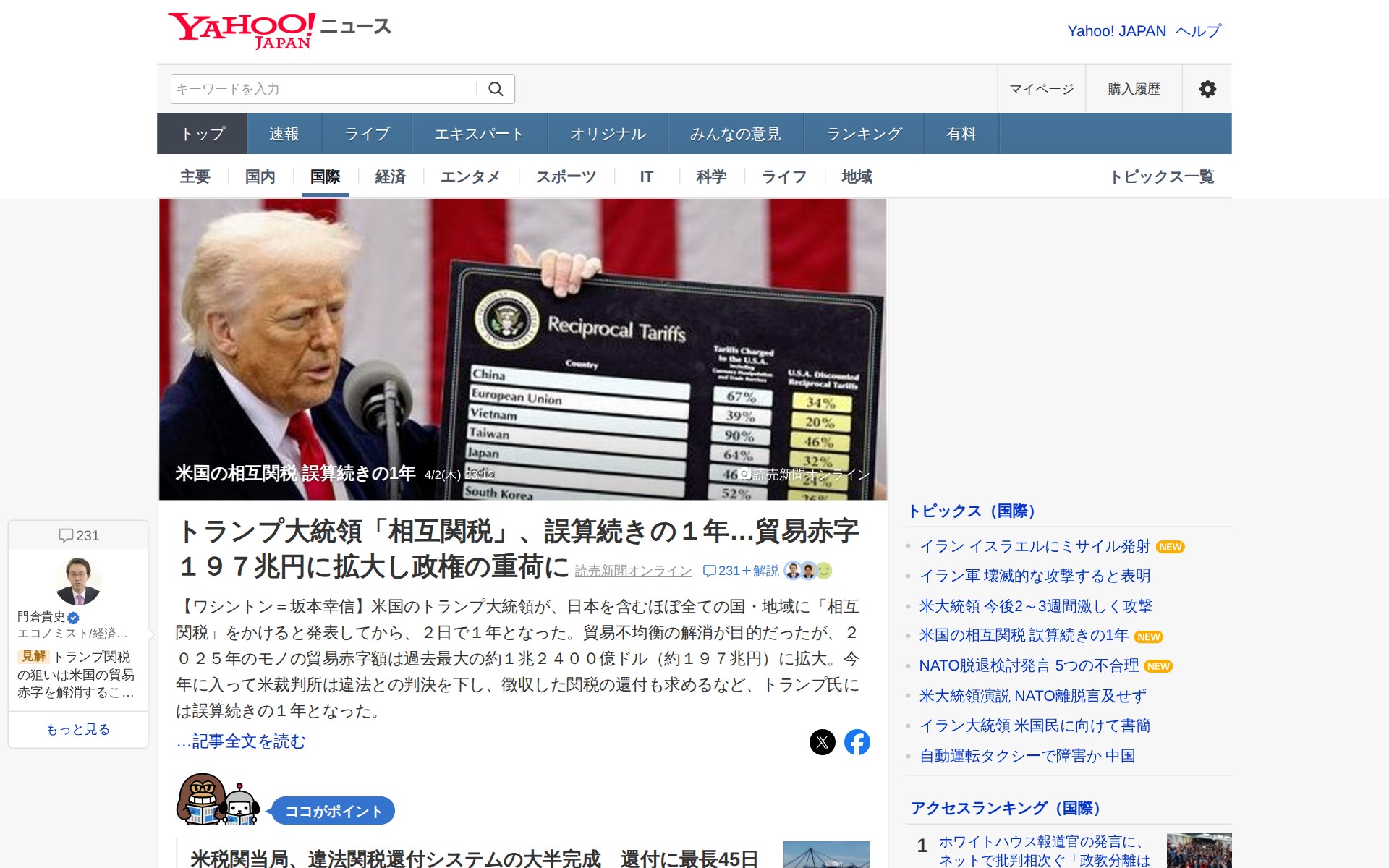 米国の相互関税 誤算続きの1年 - Yahoo!ニュース - 保存されたスクリーンショット