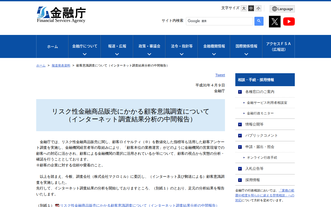 https://www.fsa.go.jp/news/30/20190409fd/fd_kouhyou.html2026年4月8日 07:32 JST•アーカイブページ・viewer・ダウンロードは、この保存版を基準に表示されます。