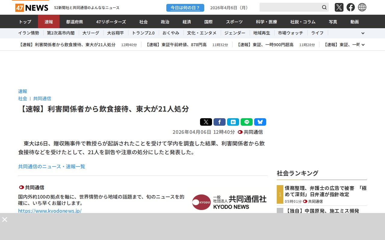【速報】利害関係者から飲食接待、東大が21人処分|47NEWS(よんななニュース)