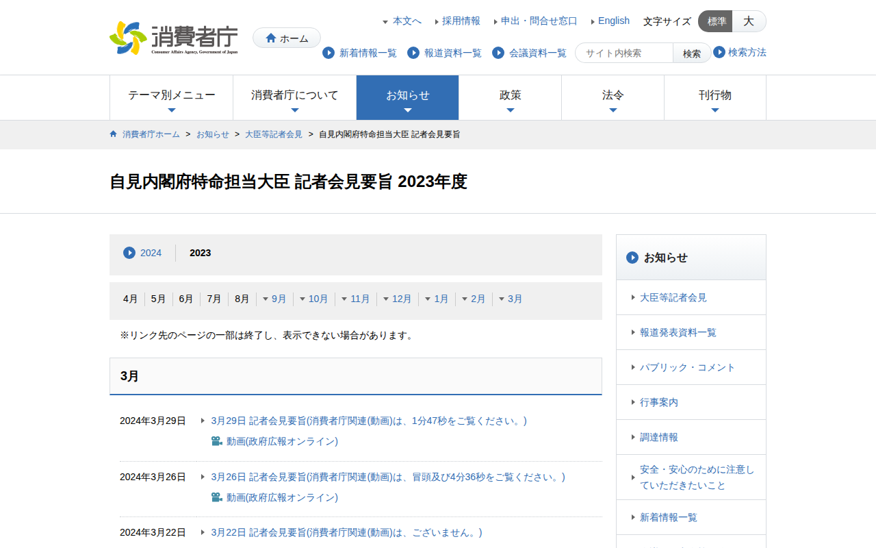 自見内閣府特命担当大臣 2023年度 | 消費者庁 - 保存されたスクリーンショット