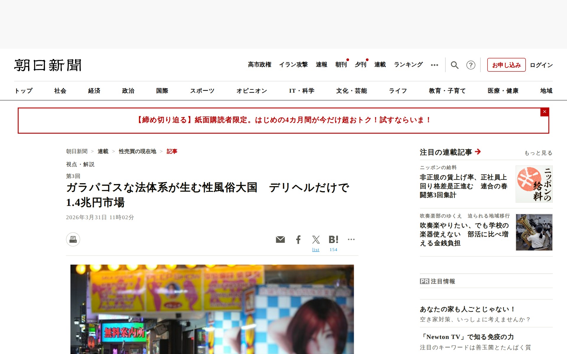 ガラパゴスな法体系が生む性風俗大国 デリヘルだけで1.4兆円市場:朝日新聞 - 保存されたスクリーンショット