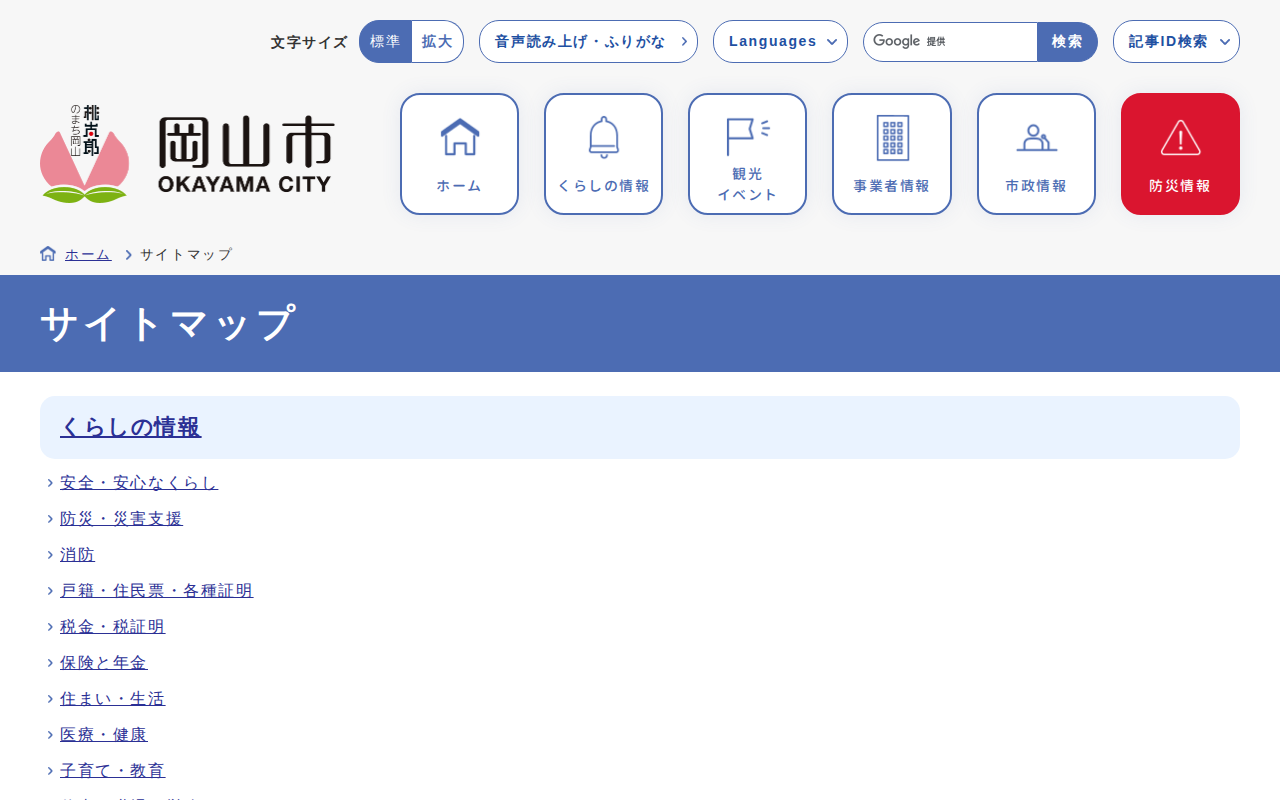 サイトマップ | 岡山市