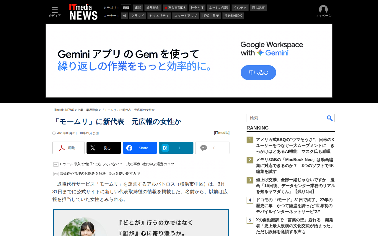 「モームリ」に新代表 元広報の女性か - ITmedia NEWS - 保存されたスクリーンショット