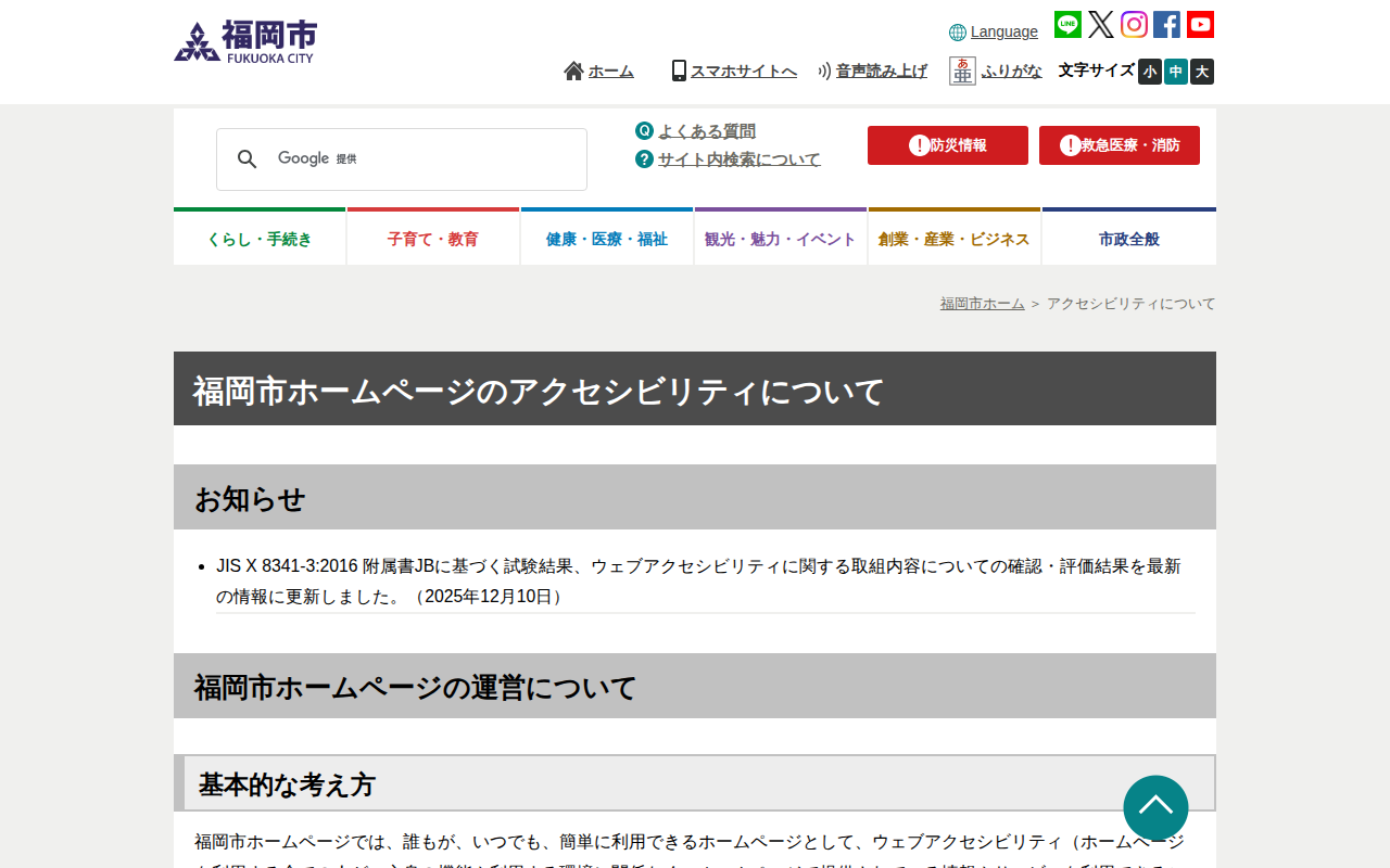 福岡市 アクセシビリティについて - 保存されたスクリーンショット