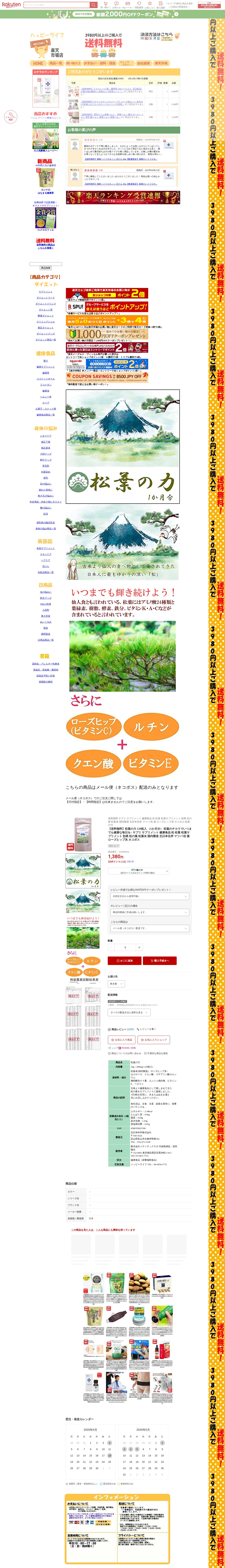 【楽天市場】【送料無料】松葉の力 120粒入 (1か月分) 松葉のチカラでいつまでも健康な毎日を♪ サプリ サプリメント 健康食品 松 松葉 松葉サプリメント 効果 松の葉 松葉末 国内製造 北日本化学 マツバ 松 葉 ローズヒップ末 ネコポス:ハッピーライフ通販 - 保存されたスクリーンショット