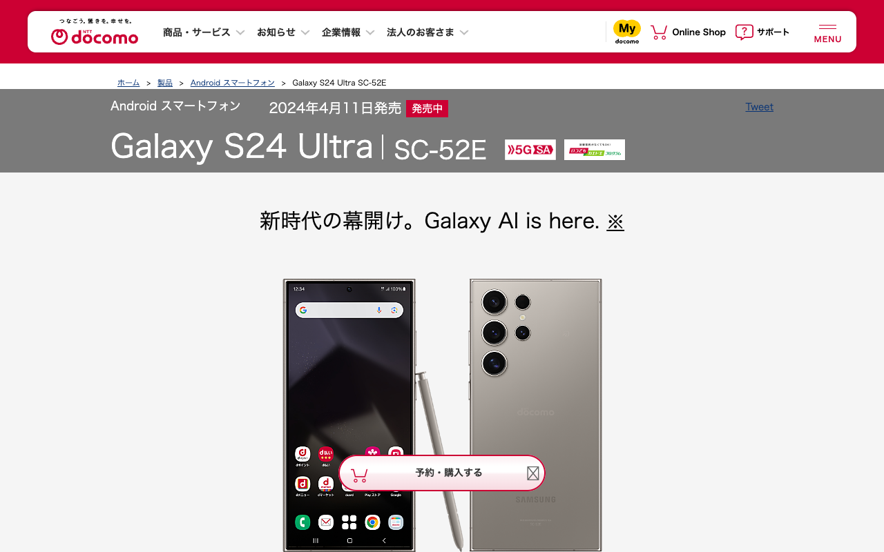 Galaxy S24 Ultra SC-52E | Android スマートフォン | 製品 | NTTドコモ - 保存されたスクリーンショット