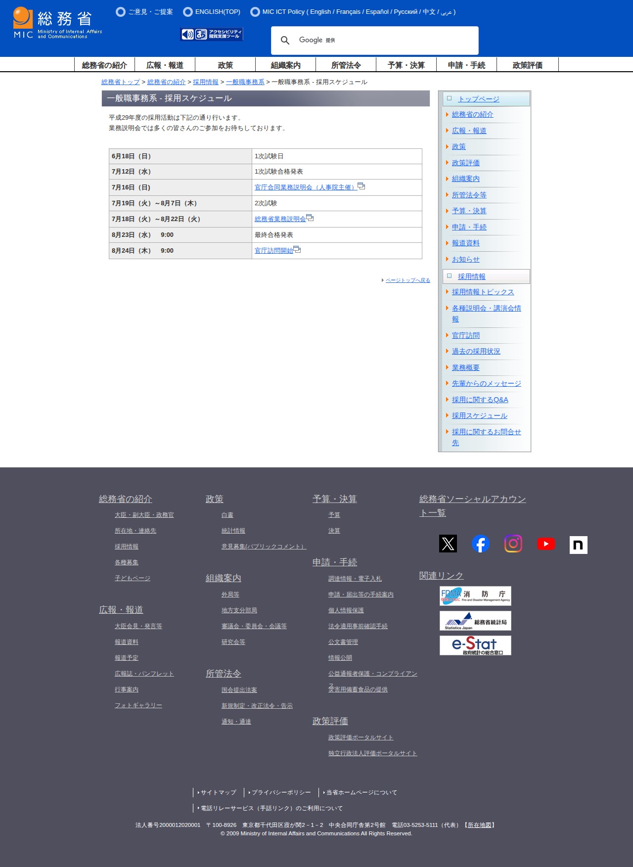 総務省|採用情報|一般職事務系 - 採用スケジュール
