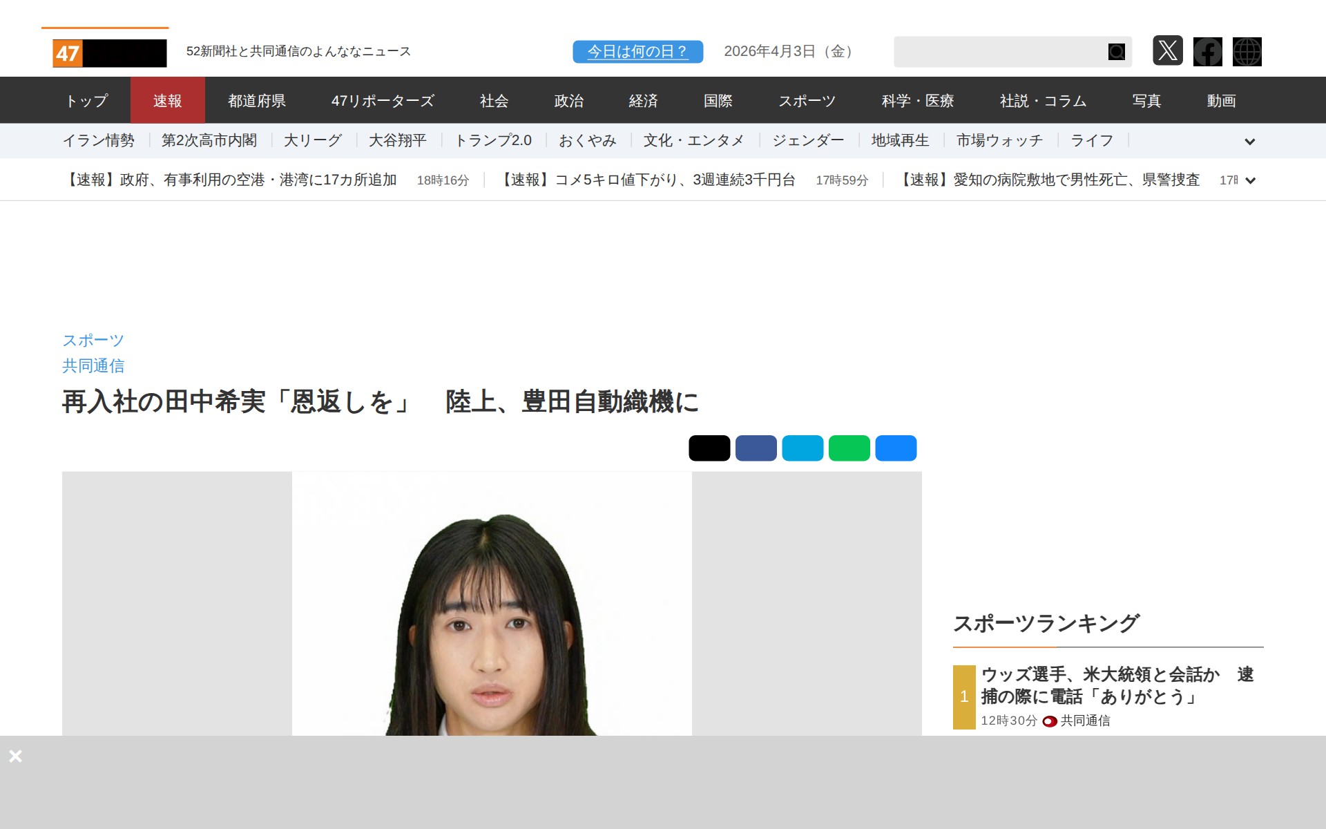 再入社の田中希実「恩返しを」 陸上、豊田自動織機に|47NEWS(よんななニュース) - 保存されたスクリーンショット