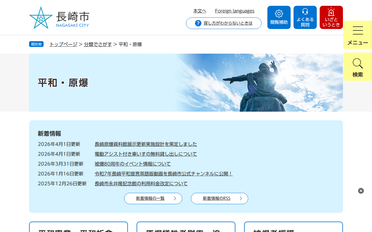 平和・原爆 - 長崎市ウェブサイト - 保存されたスクリーンショット