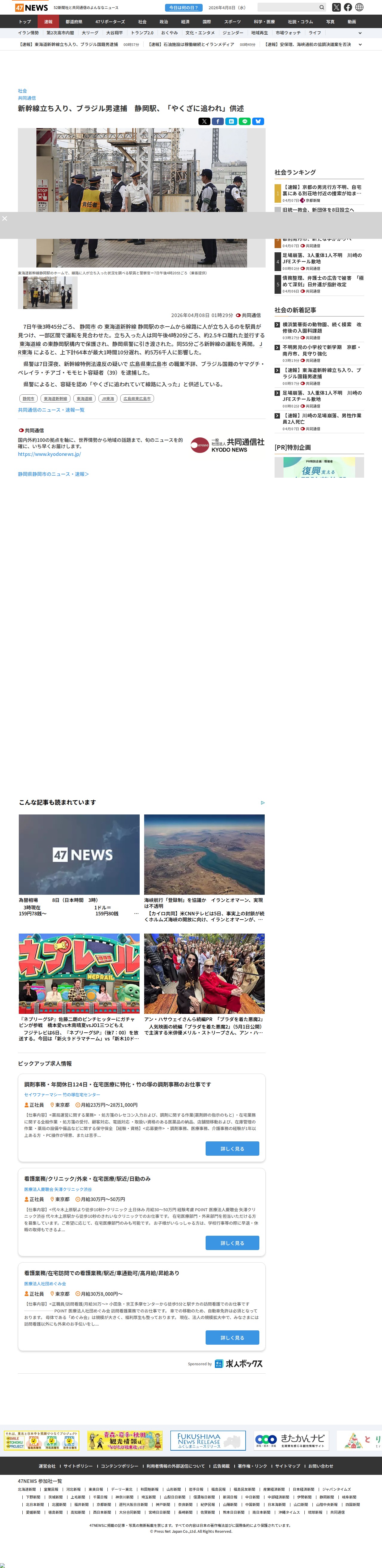新幹線立ち入り、ブラジル男逮捕 静岡駅、「やくざに追われ」供述|47NEWS(よんななニュース)
