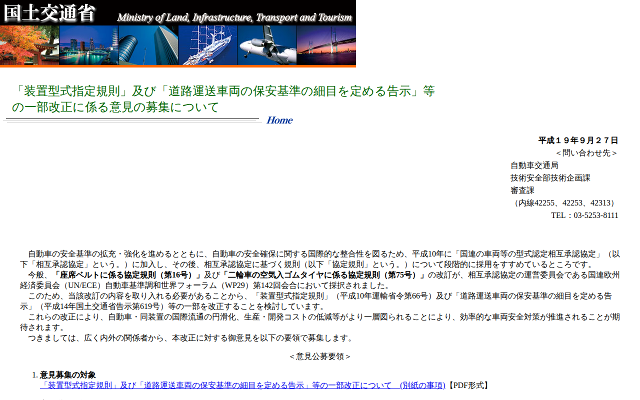 「装置型式指定規則」及び「道路運送車両の保安基準の細目を定める告示」等の一部改正に係る意見の募集について