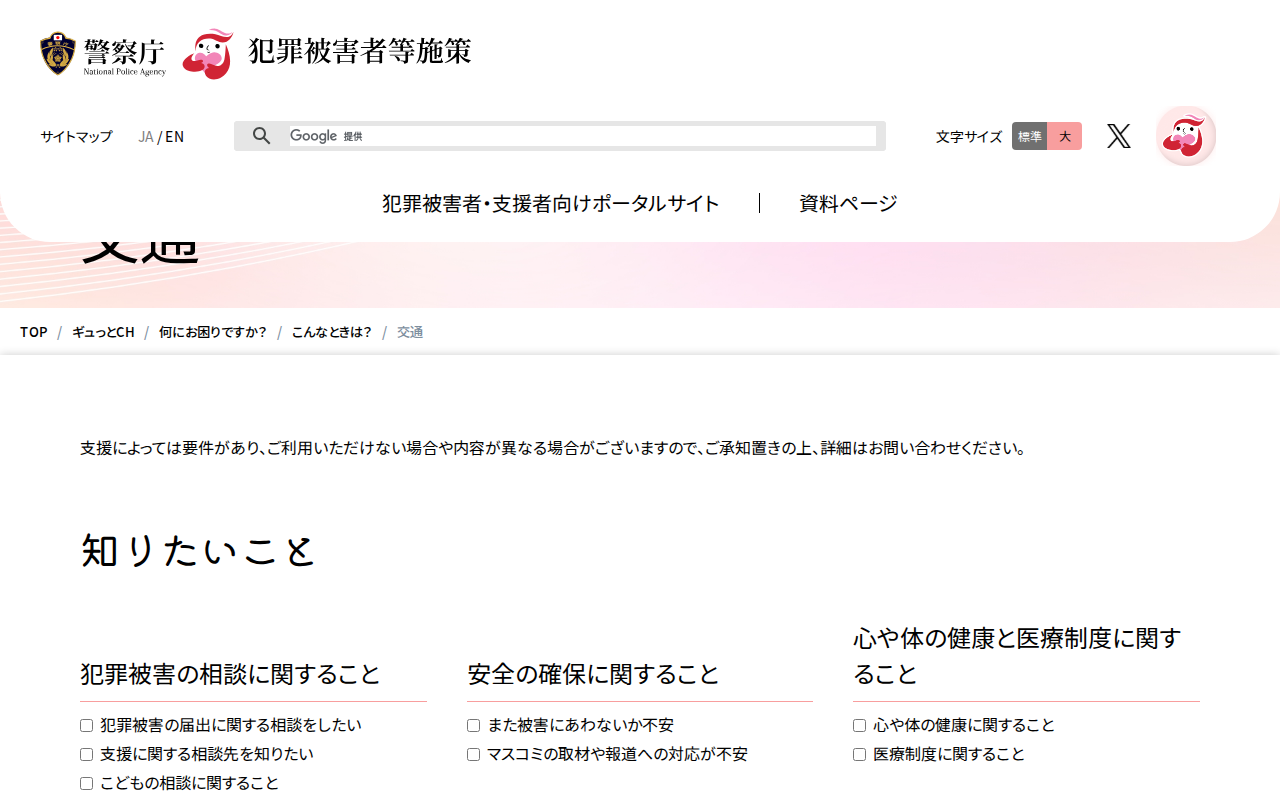交通 / 犯罪被害者等施策ホームページ - 警察庁