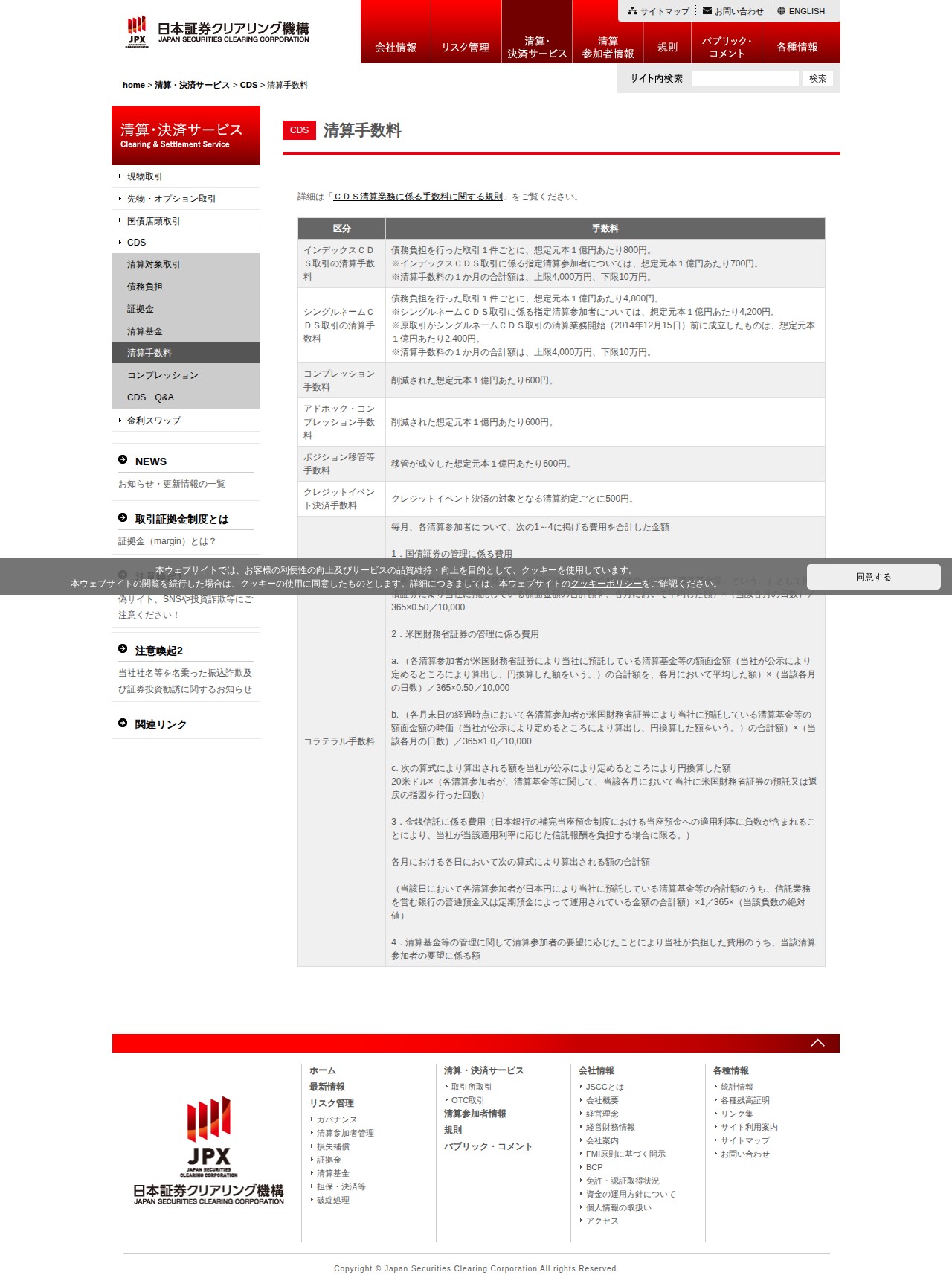 清算手数料 | 株式会社日本証券クリアリング機構 - 保存されたスクリーンショット