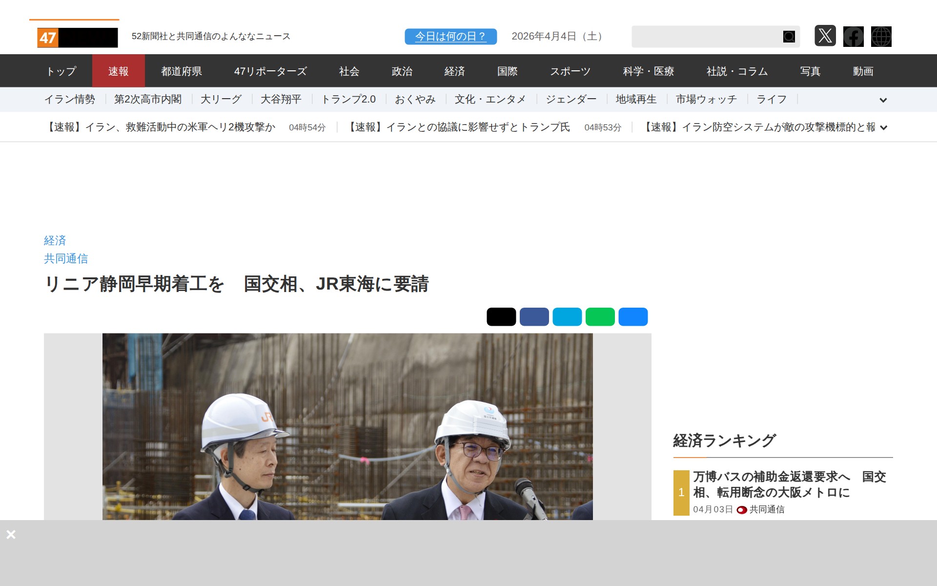 リニア静岡早期着工を 国交相、JR東海に要請|47NEWS(よんななニュース)