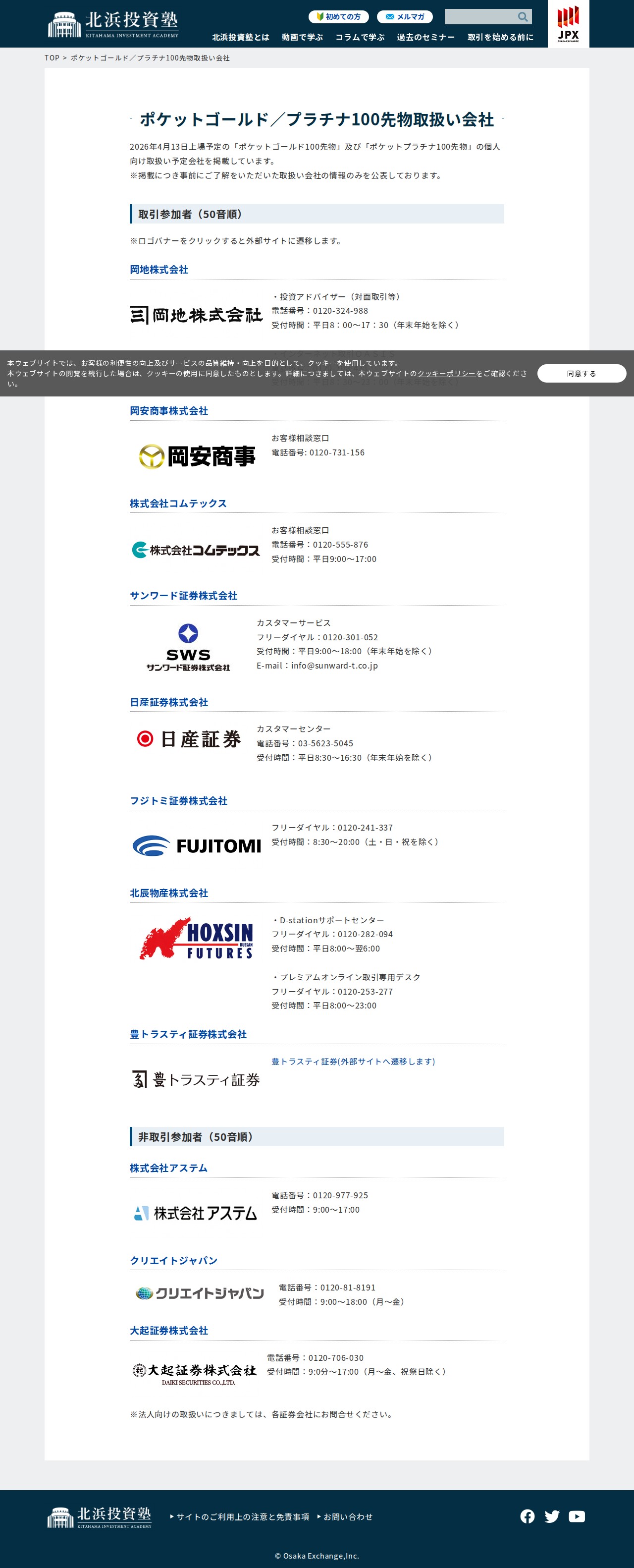 ポケットゴールド/プラチナ100先物取扱い会社 | 北浜投資塾 - 大阪取引所(日本取引所グループ)