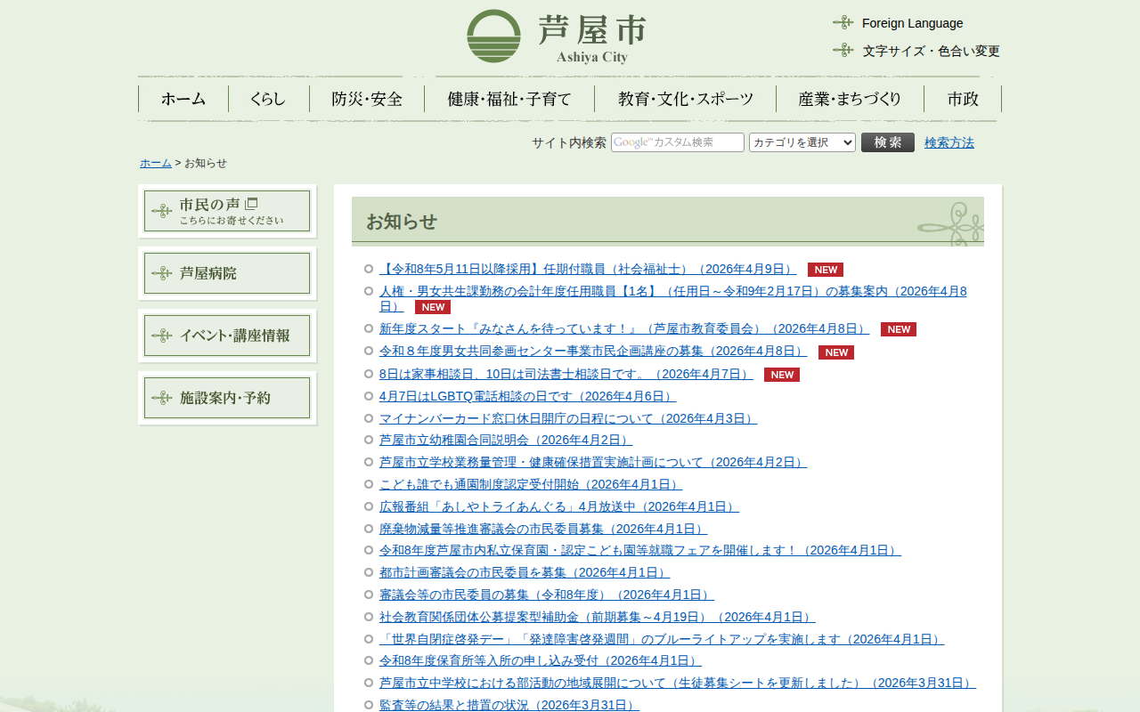 芦屋市/お知らせ