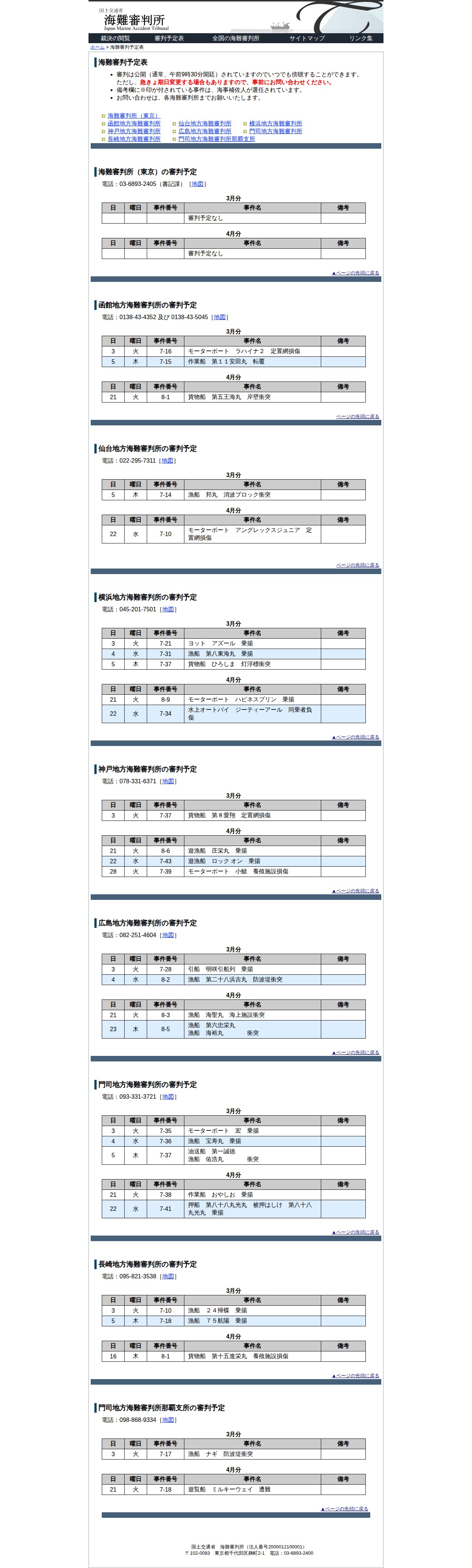 海難審判予定表 -海難審判所 - 保存されたスクリーンショット