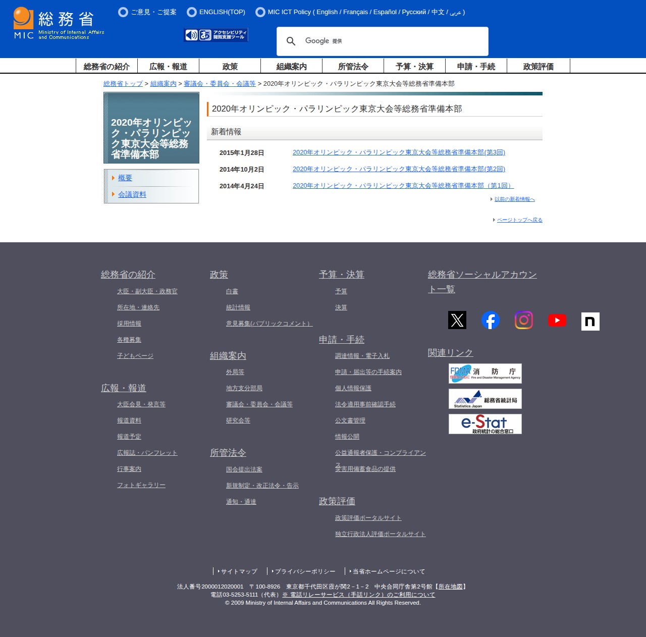 総務省|2020年オリンピック・パラリンピック東京大会等総務省準備本部 - 保存されたスクリーンショット