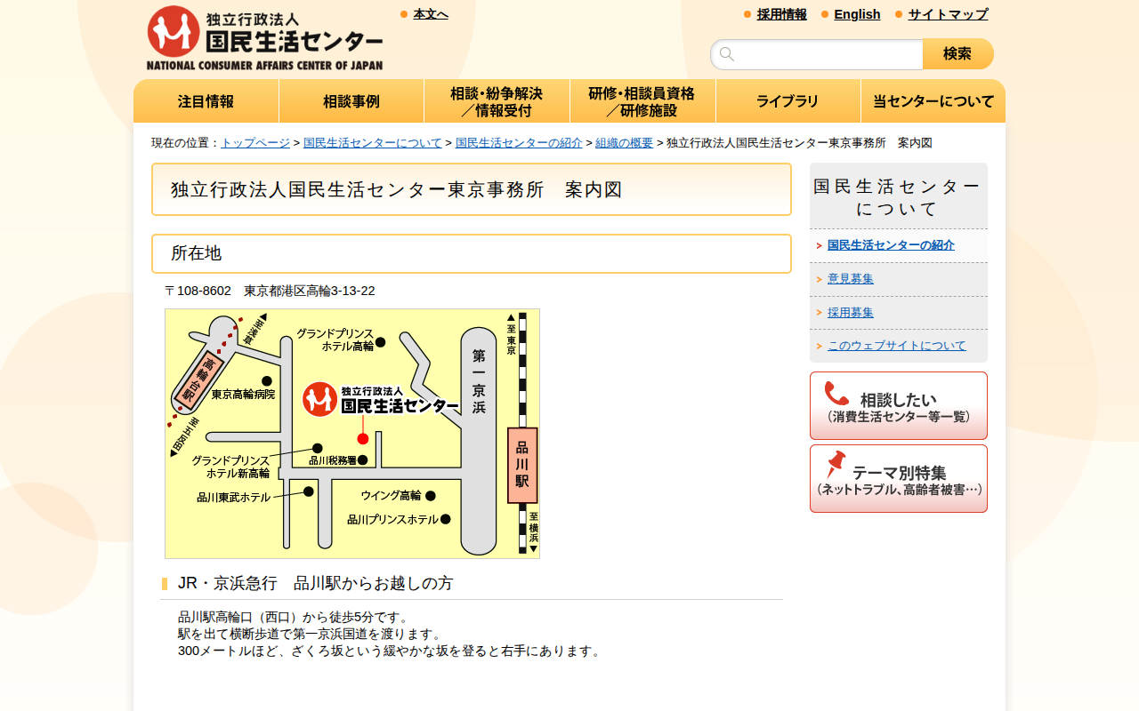 独立行政法人国民生活センター東京事務所 案内図(組織の概要)_国民生活センター
