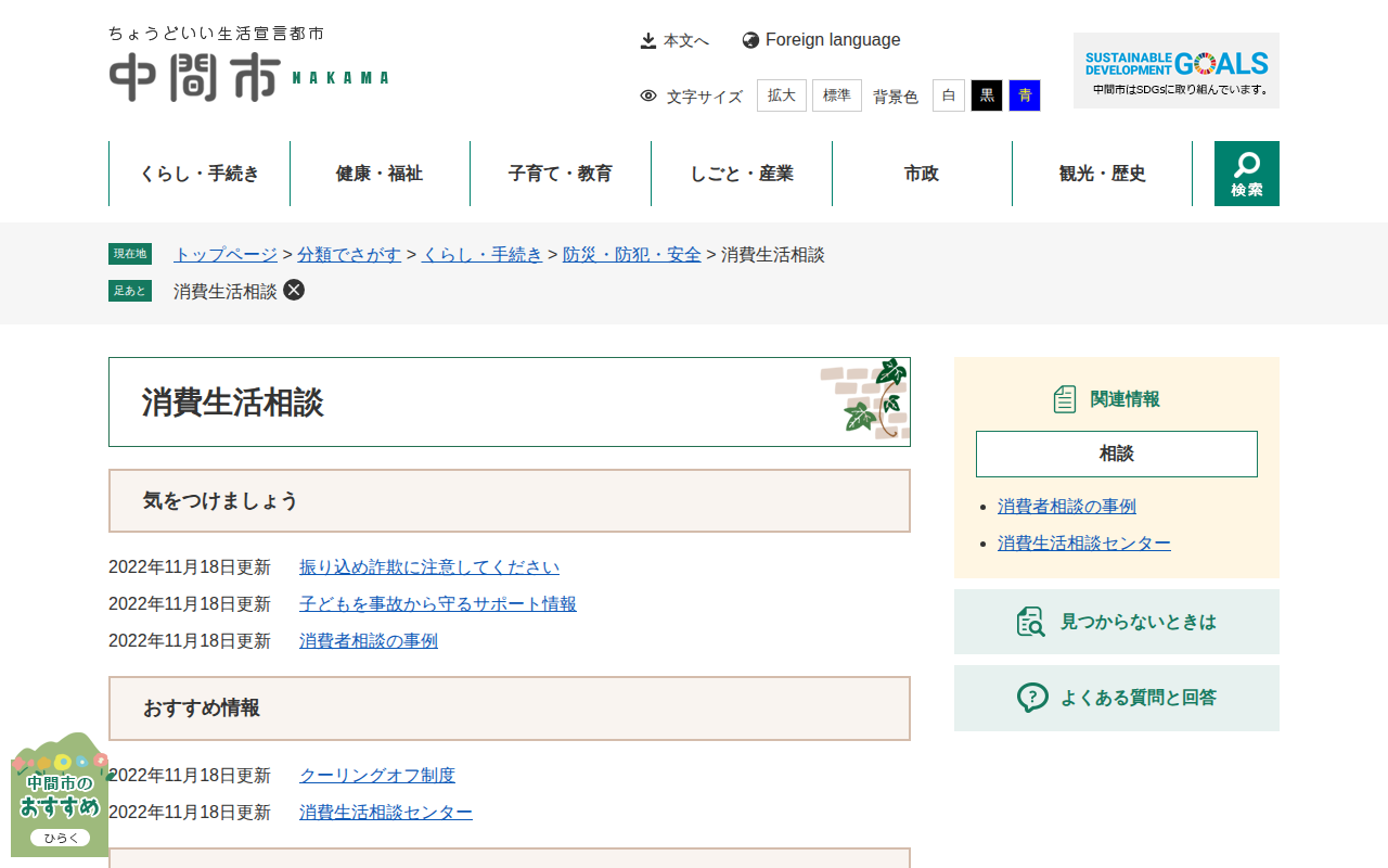 消費生活相談 - 中間市公式ホームページ