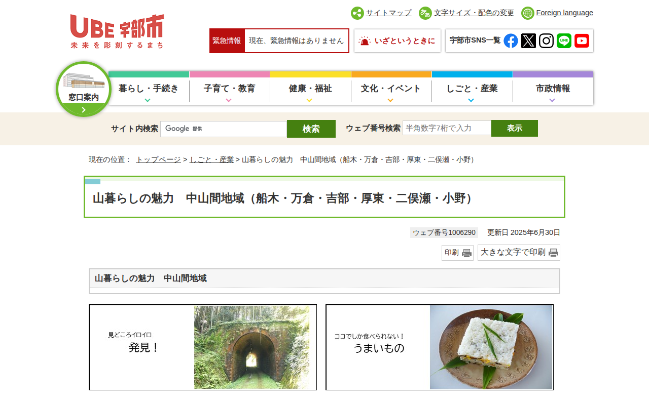 山暮らしの魅力 中山間地域(船木・万倉・吉部・厚東・二俣瀬・小野)|宇部市公式ウェブサイト - 保存されたスクリーンショット
