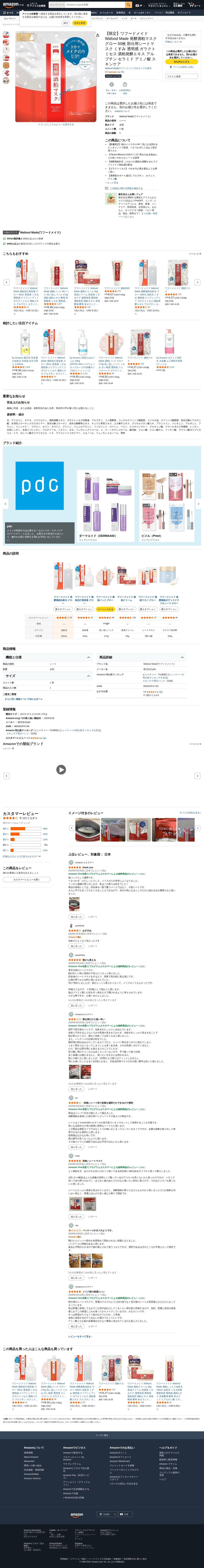 Amazon.co.jp: 【限定】ワフードメイド Wafood Made 発酵酒粕マスク グロー 50枚 部分用シートマスク くすみ 透明感 ガラクトミセス 酒粕発酵エキス アルブチン セラミド アミノ酸 スキンケア : ビューティー - Saved screenshot