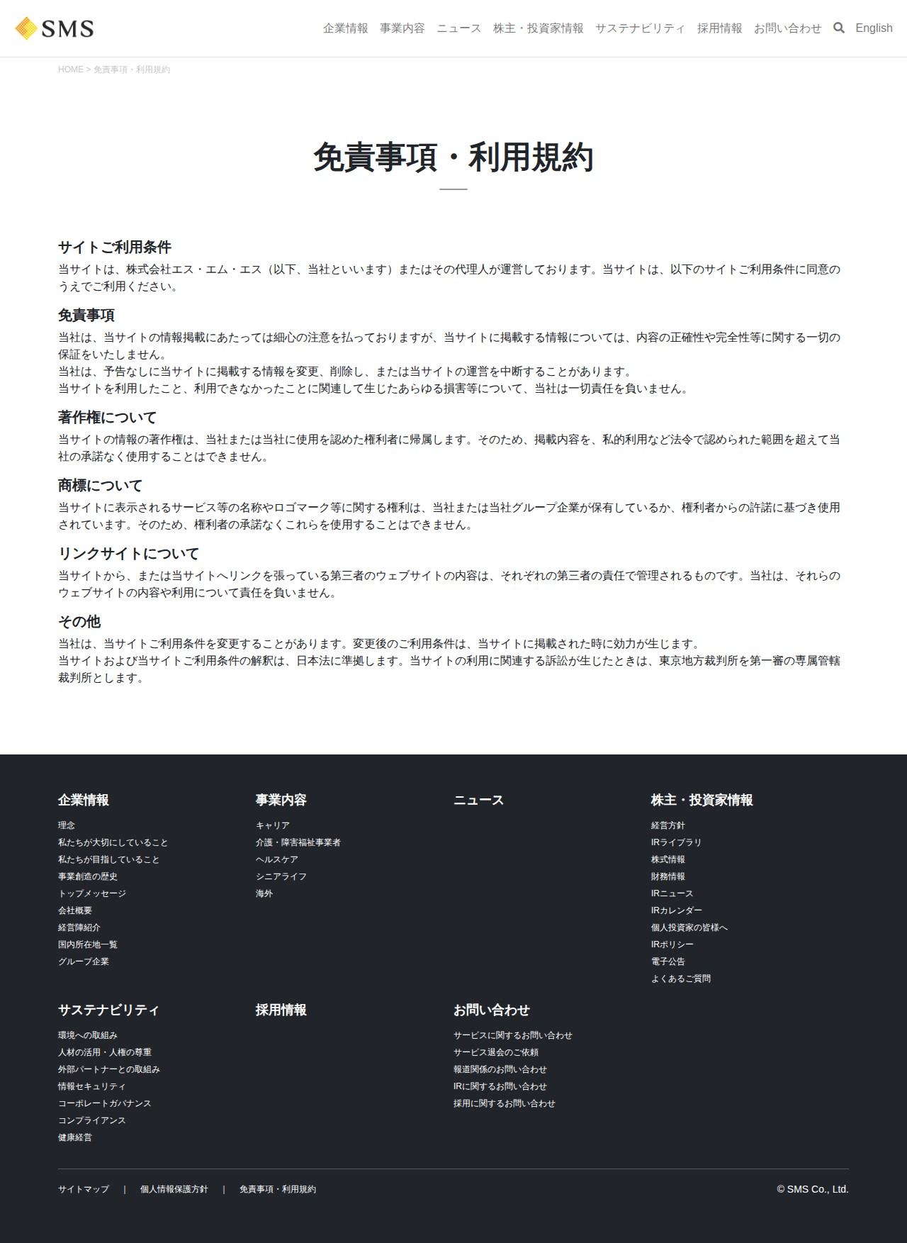 免責事項・利用規約|株式会社エス・エム・エス - Saved screenshot