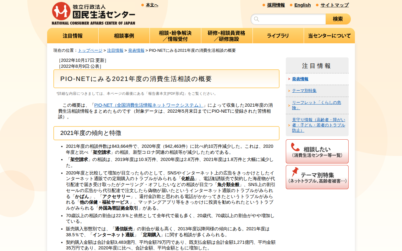 PIO-NETにみる2021年度の消費生活相談の概要(発表情報)_国民生活センター