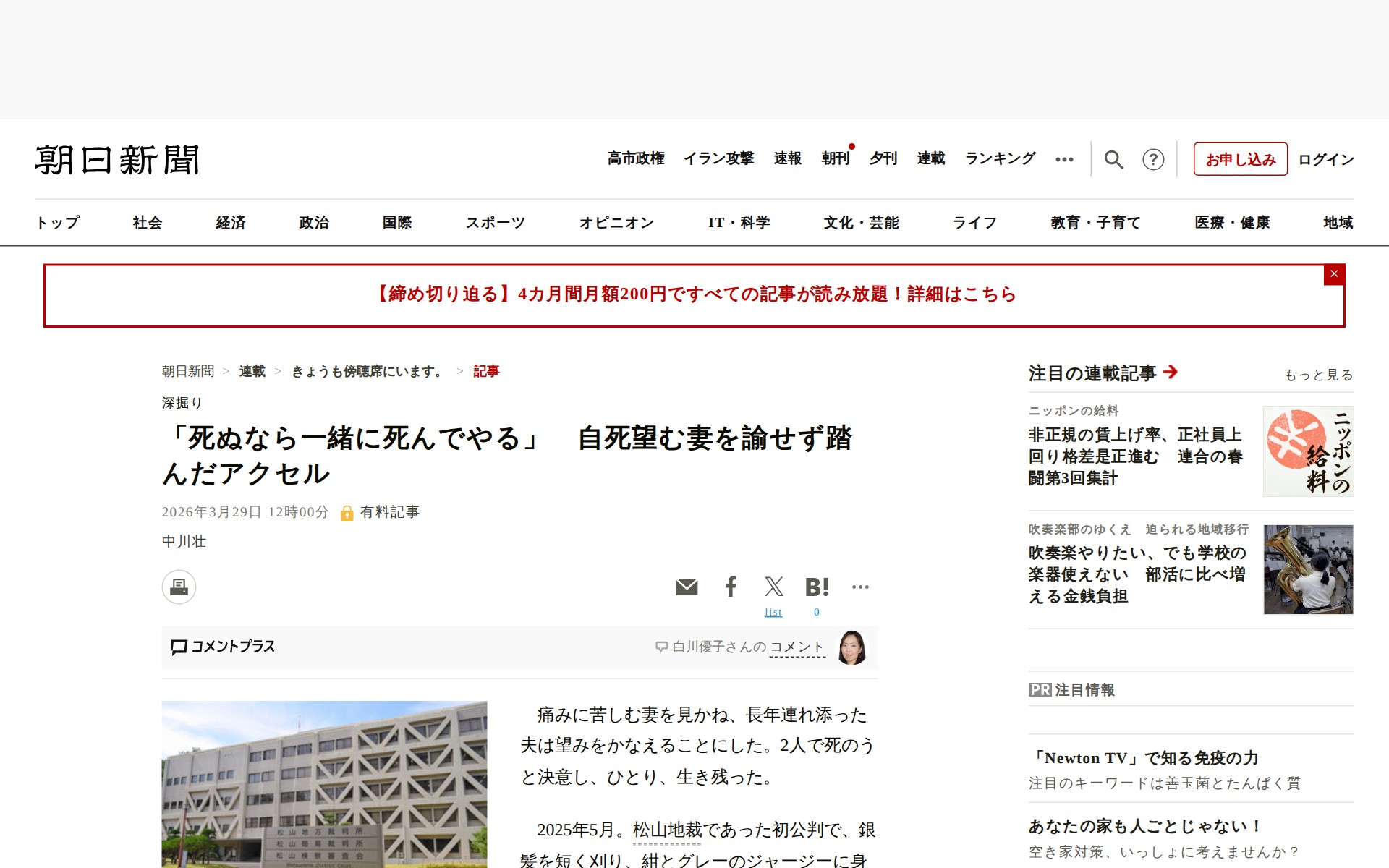 ![「死ぬなら一緒に死んでやる」 自死望む妻を諭せず踏んだアクセル [愛媛県]:朝日新聞 - Saved screenshot](https://pub-f6fa8ca7bebe4069bff3224f9a8f5334.r2.dev