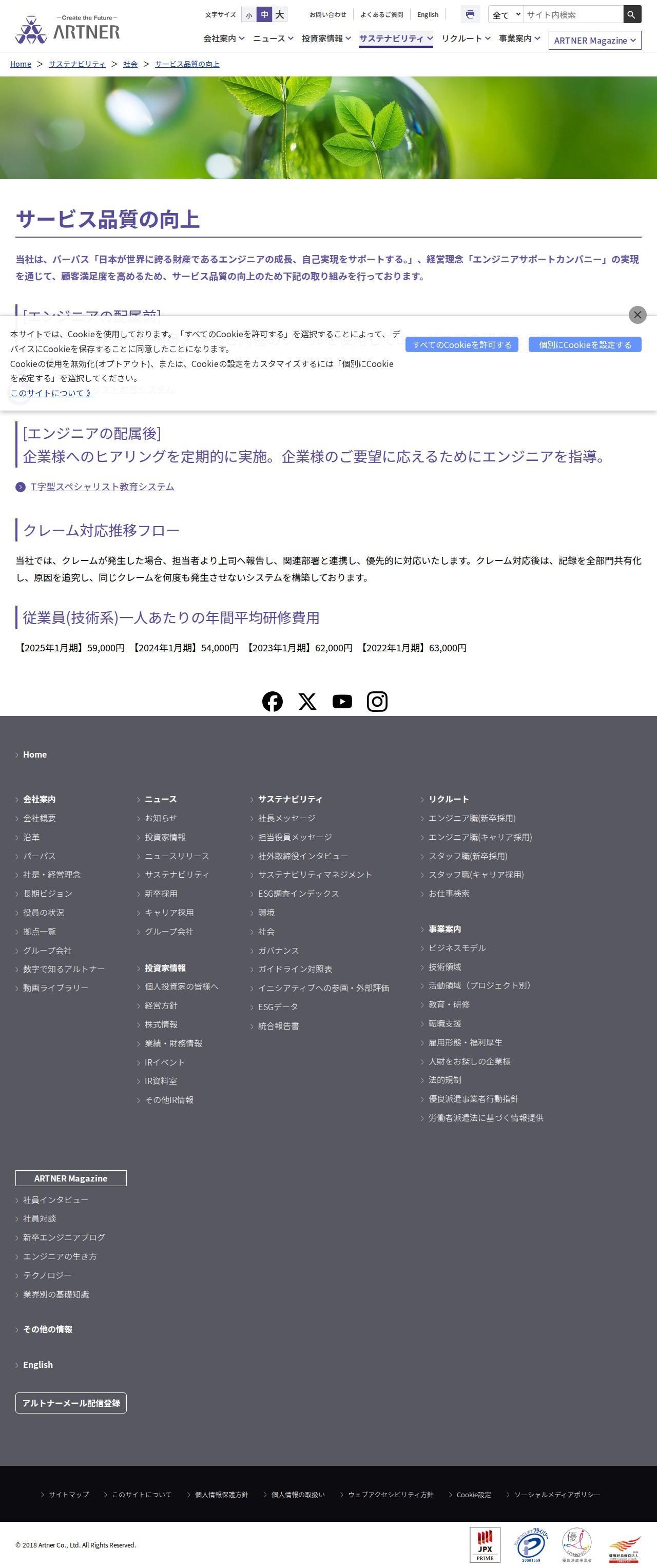 https://www.artner.co.jp/sustainability/social/quality/The evidence pack includes HTML, screenshots, summaries, and metadata. It can be downloaded on Pro.