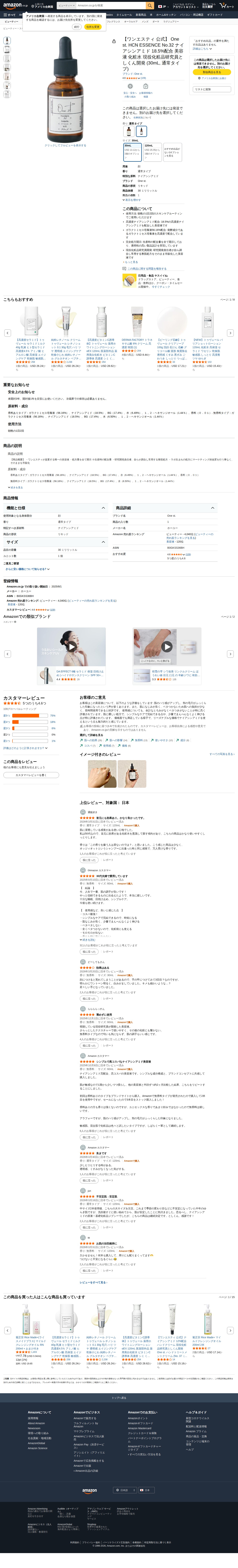 Amazon | 【ワンエスティ 公式】 One st. HCN ESSENCE No.32 ナイアシンアミド 18.5%配合 美容液 化粧水 現役化粧品研究員としくん開発 (30mL, 通常タイプ) | One st. | 美容液 通販 - Saved screenshot