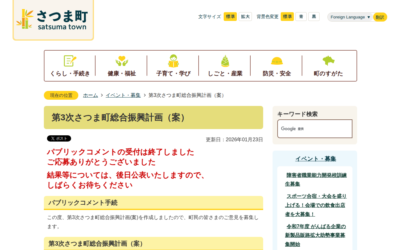 第3次さつま町総合振興計画(案)/さつま町公式ホームページ - Saved screenshot