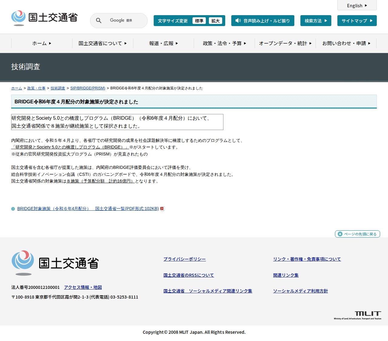 BRIDGE令和6年度4月配分の対象施策が決定されました - 国土交通省 - Saved screenshot