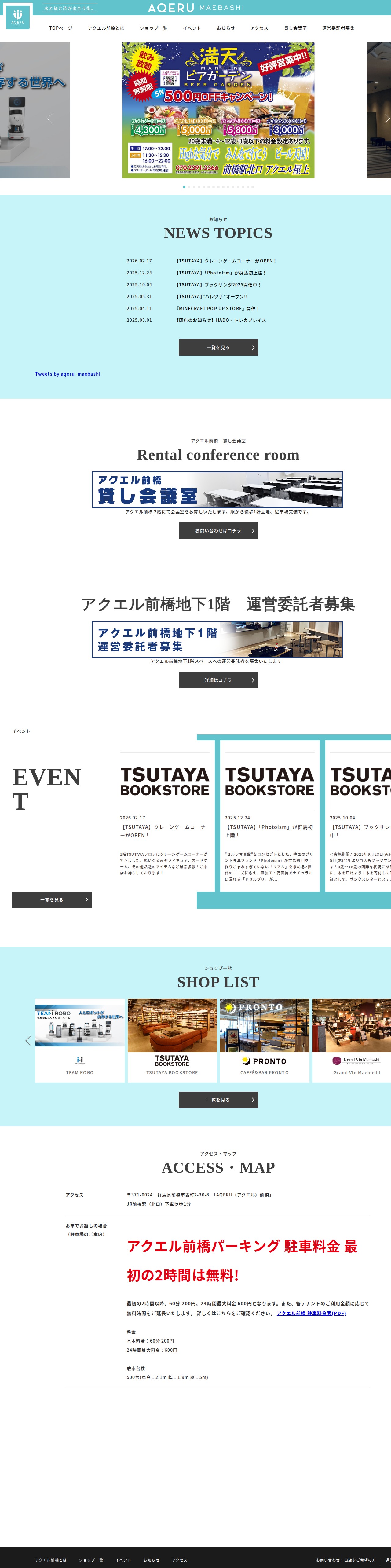 AQERU前橋 | 前橋駅前のエンターテイメントと憩いの空間 - Saved screenshot