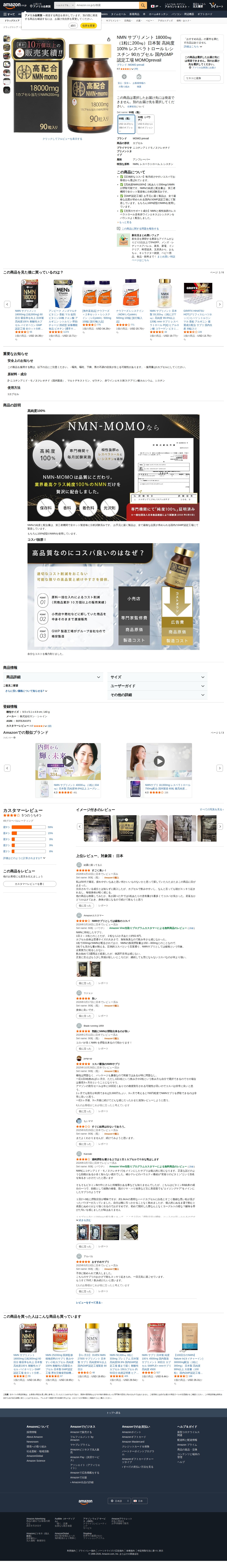 Amazon | NMN サプリメント 18000㎎ (1粒に200㎎)日本製 高純度100% レスベラトロール L-シスチン 90カプセル 国内GMP認定工場 MOMOprevail | MOMO prevail | B3 - Saved screenshot