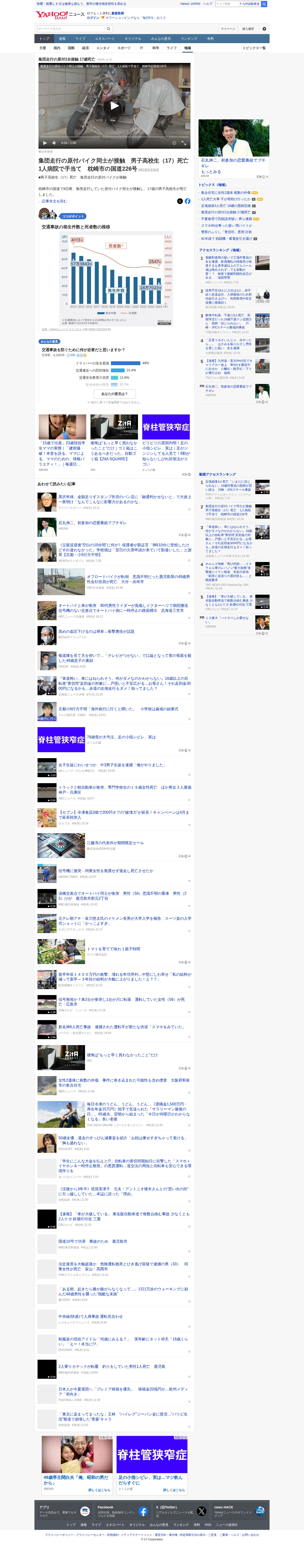 集団走行の原付2台接触 17歳死亡 - Yahoo!ニュース - Saved screenshot