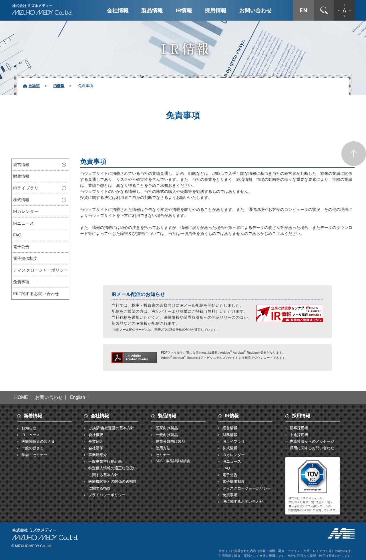 免責事項 | IR情報 | 株式会社ミズホメディー