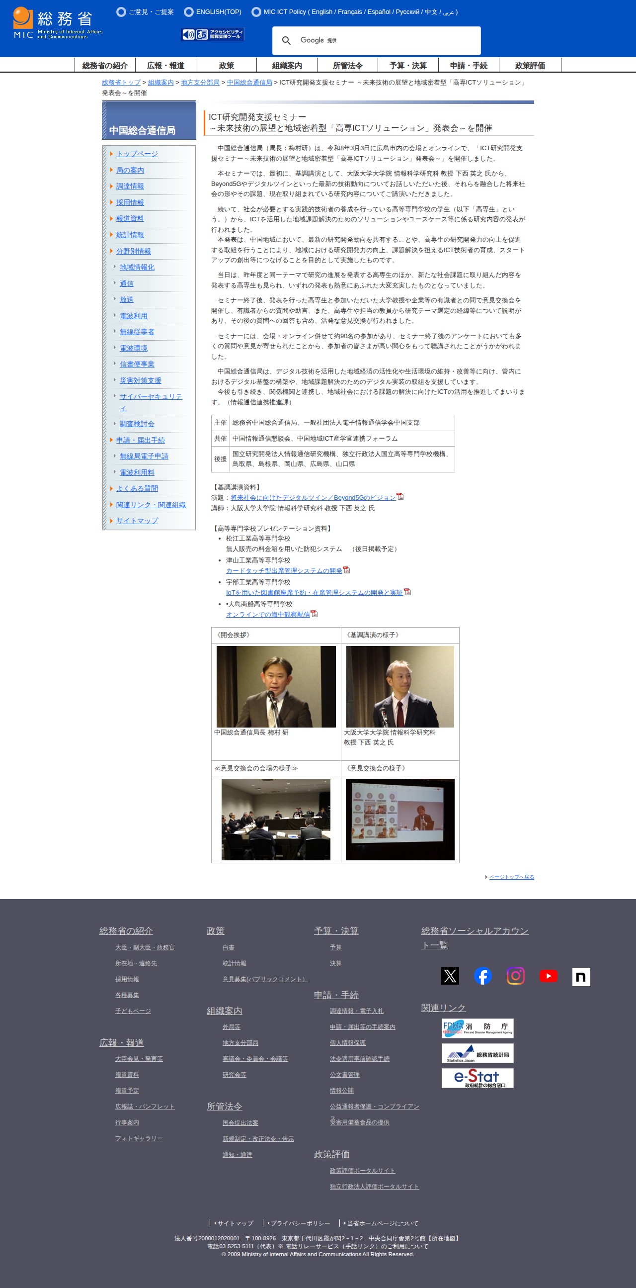 総務省|中国総合通信局|ICT研究開発支援セミナー ~未来技術の展望と地域密着型「高専ICTソリューション」発表会~を開催