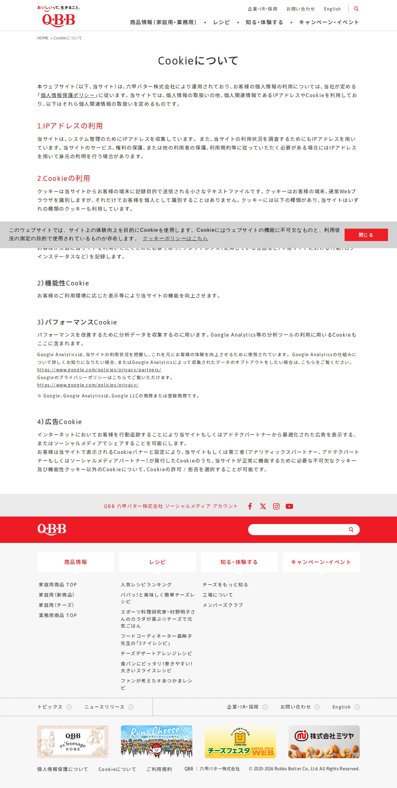 Cookieについて | QBB | 六甲バター株式会社