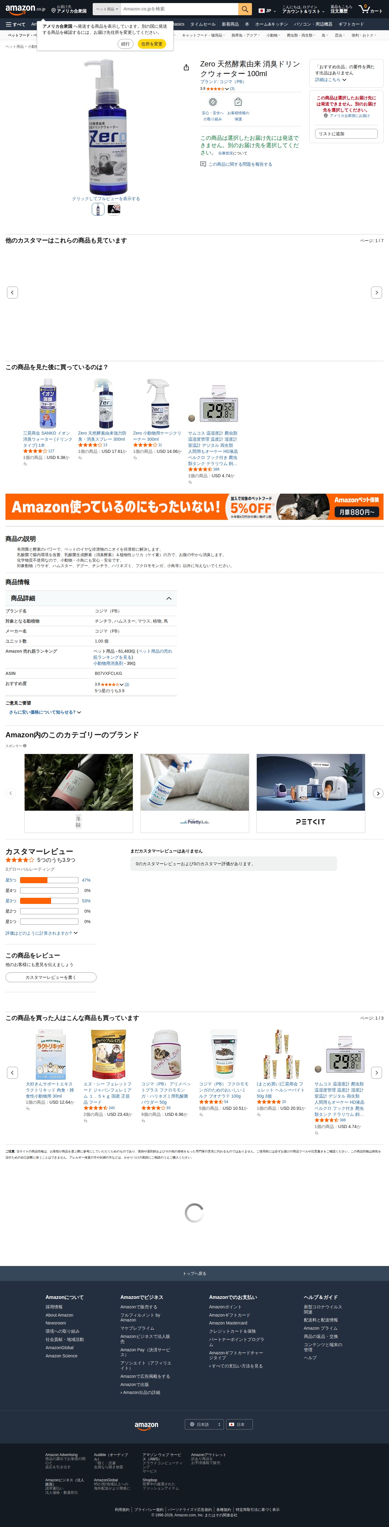 Amazon.co.jp: Zero 天然酵素由来 消臭ドリンクウォーター 100ml : ペット用品
