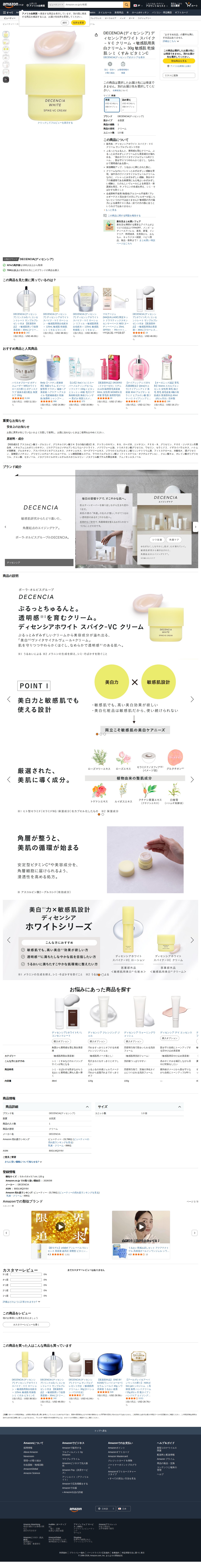 Amazon | DECENCIA (ディセンシア) ディセンシアホワイト スパイク-VC クリーム <敏感肌用美白クリーム> 30g 敏感肌 乾燥肌 シミ くすみ ビタミンC | DECENCIA(ディセンシア) | 乳液・クリーム 通販