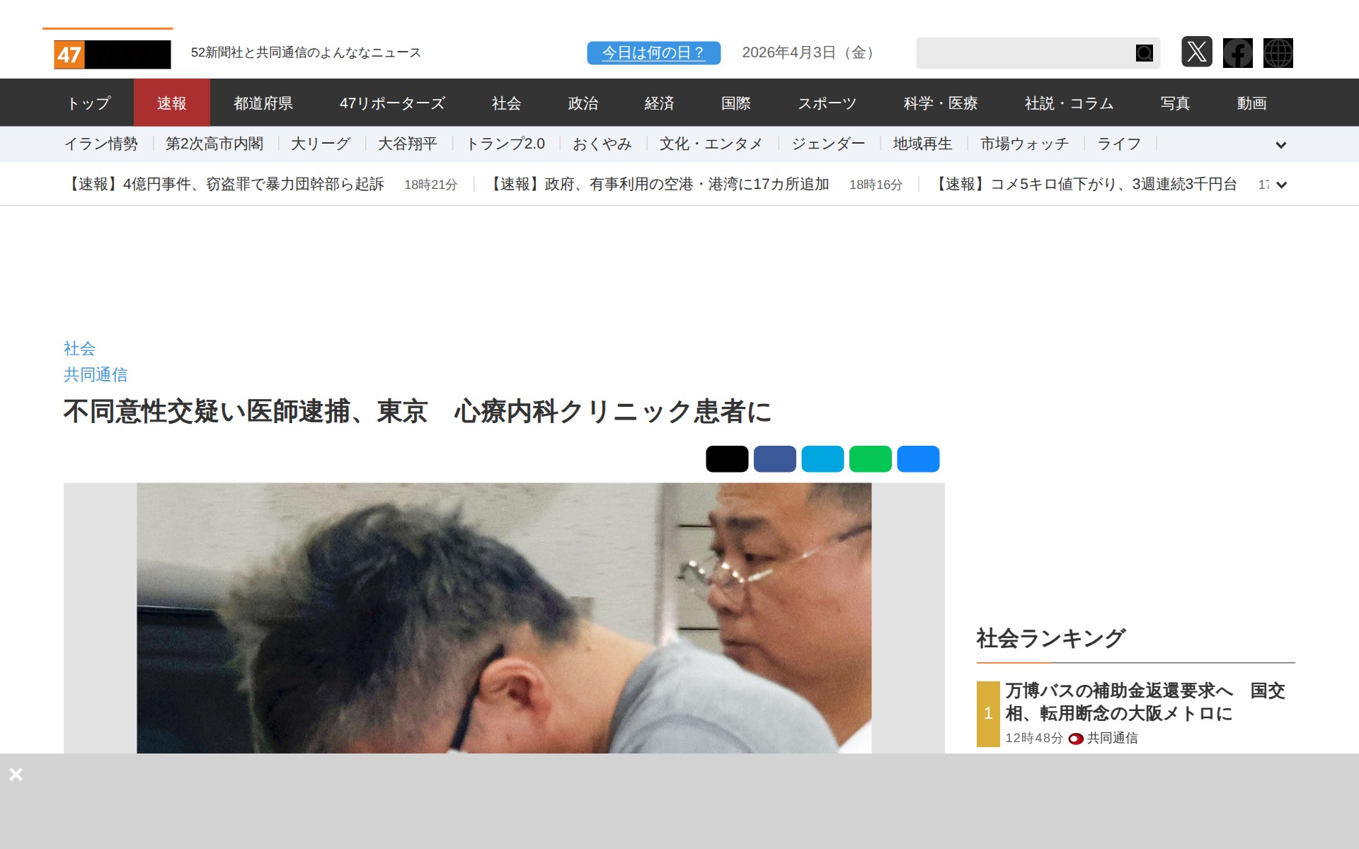 不同意性交疑い医師逮捕、東京 心療内科クリニック患者に|47NEWS(よんななニュース) - Saved screenshot
