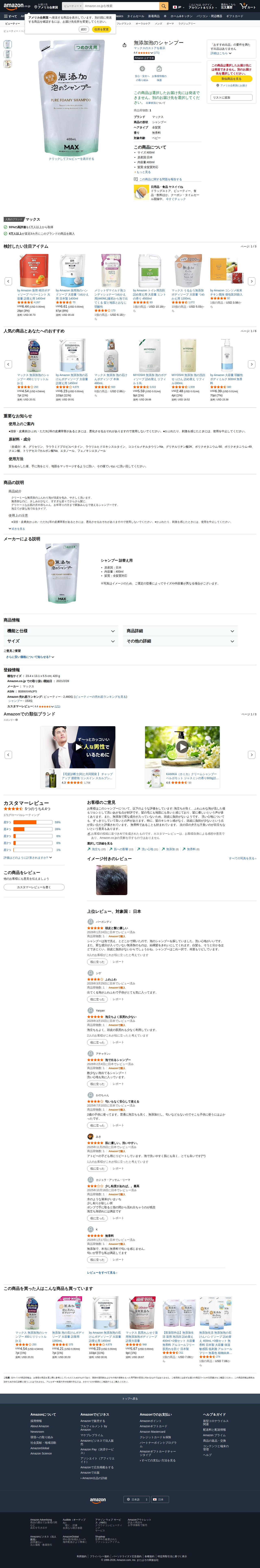 Amazon | 無添加泡のシャンプー | マックス | シャンプー 通販